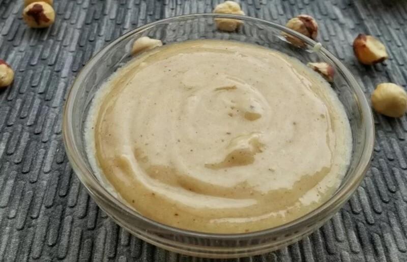 Composition: noisettes grillé 45%, Sucre de canne, lait en poudre, graisses végétales non-hydrogénées, huile de tournesol, beurre de cacao, huile d’olive extra vierge, émulsifiant, lécithine de soja.